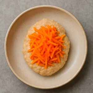 Отбивная из куриного мяса на пару, посыпанная тертой морковью